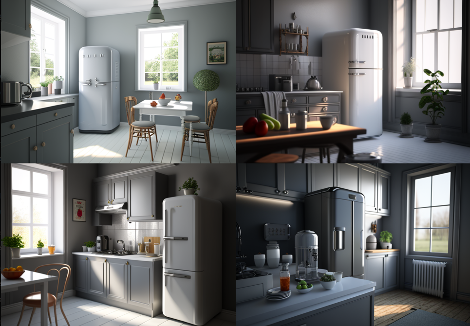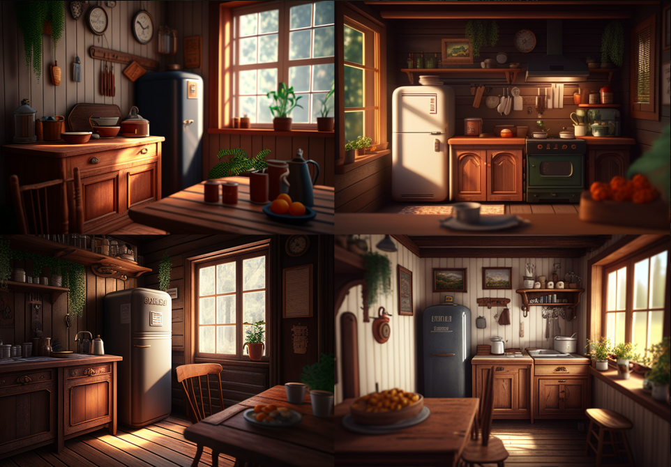 같은 프롬프트를 입력하고 모델버전만 달리 설정해도 다른 분위기의 주방이 만들어집니다.