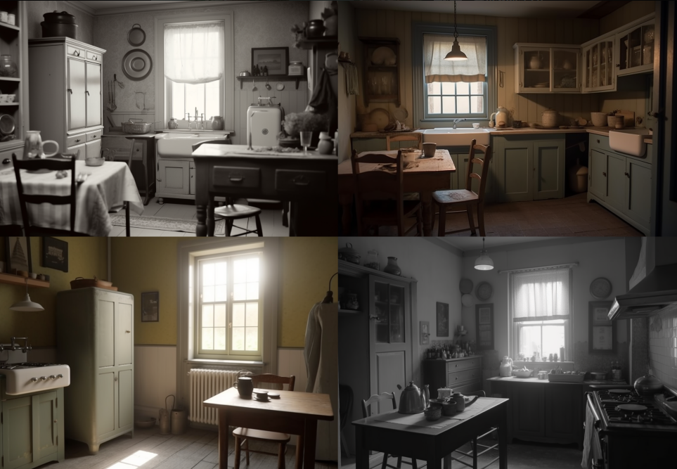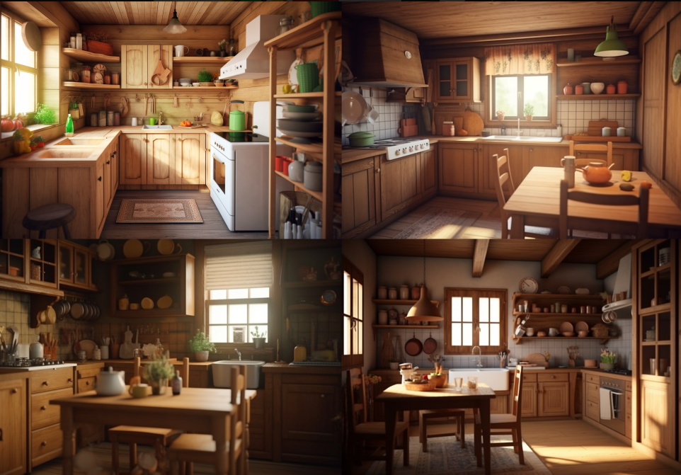 같은 프롬프트를 입력하고 모델버전만 달리 설정해도 다른 분위기의 주방이 만들어집니다.